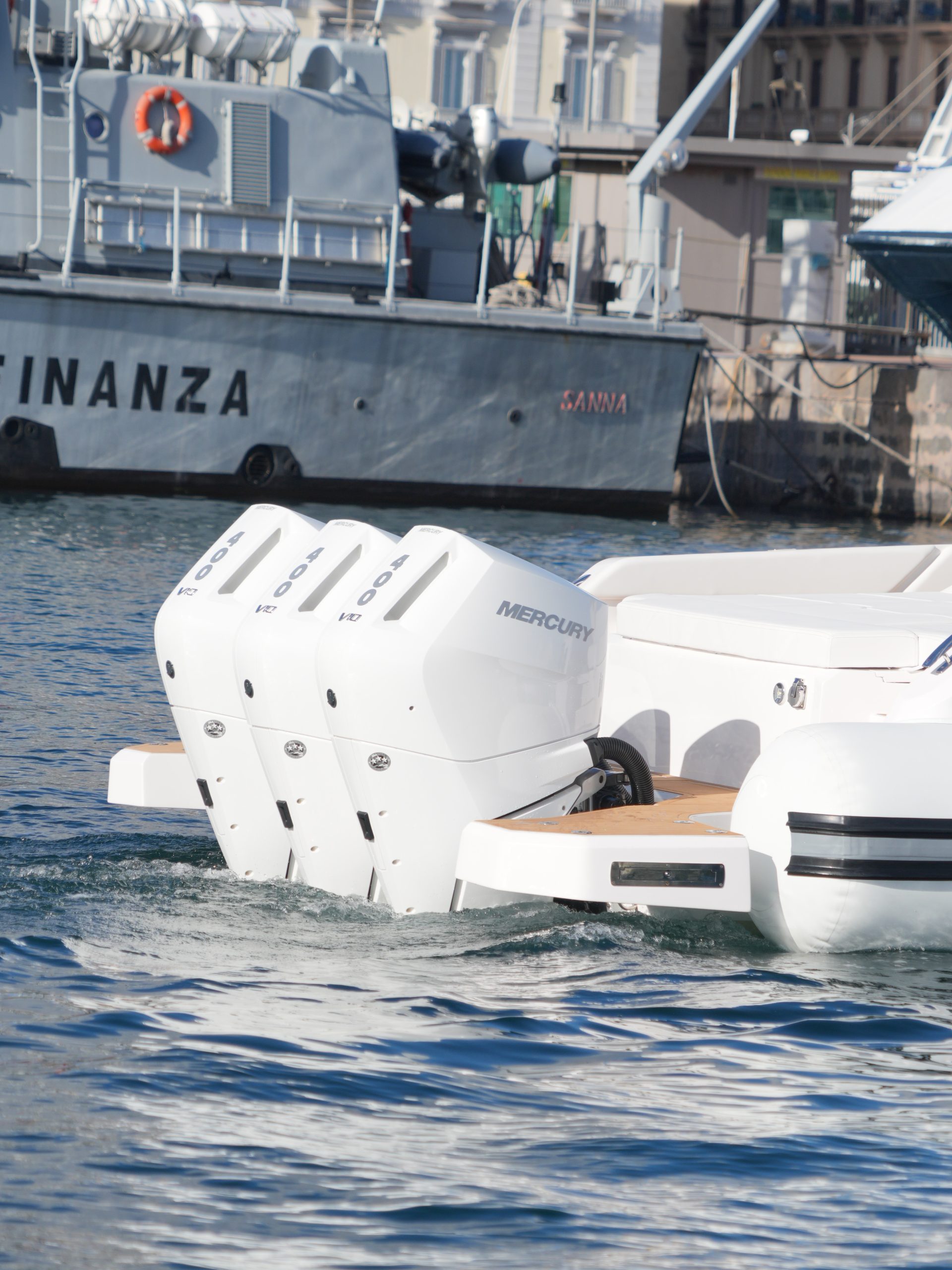 La motorizzazione fino a 3 x 425 hp garantisce potenza, stabilità e sicurezza, rendendolo perfetto anche per navigazioni impegnative.