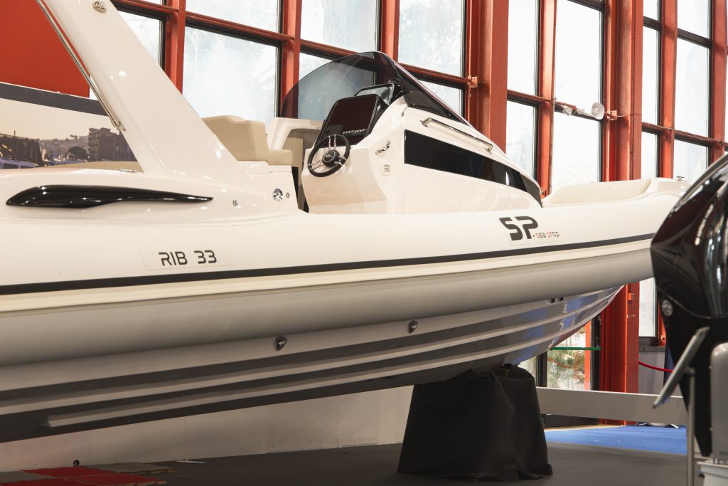 Lo scafo del RIB 33 è realizzato in vetroresina ad alta resistenza, con tubolari bianchi che assicurano durabilità e affidabilità anche nelle navigazioni più impegnative. Le finiture interne ed esterne possono essere personalizzate con verniciature speciali, paiolato in teak o SeaDek e tubolari effetto carbonio o bicolore, per un look distintivo e moderno.